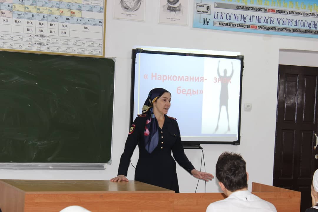 В рамках Общероссийской антинаркотической акции "Сообщи где торгуют смертью!" в школе состоялась встреча подполковник полиции, инспектора комиссии по делам несовершеннолетних ОМВД России по Шелковскому району Маркаевой Хадижат Нурадиевны со старшеклассниками. Гостья рассказала о вреде наркотиков человеку и о том, какие последствия могут вызвать подобные вещества. Она призвала учащихся быть более бдительными и осторожными по отношению к этому вопросу и пропагандировать здоровый образ жизни!