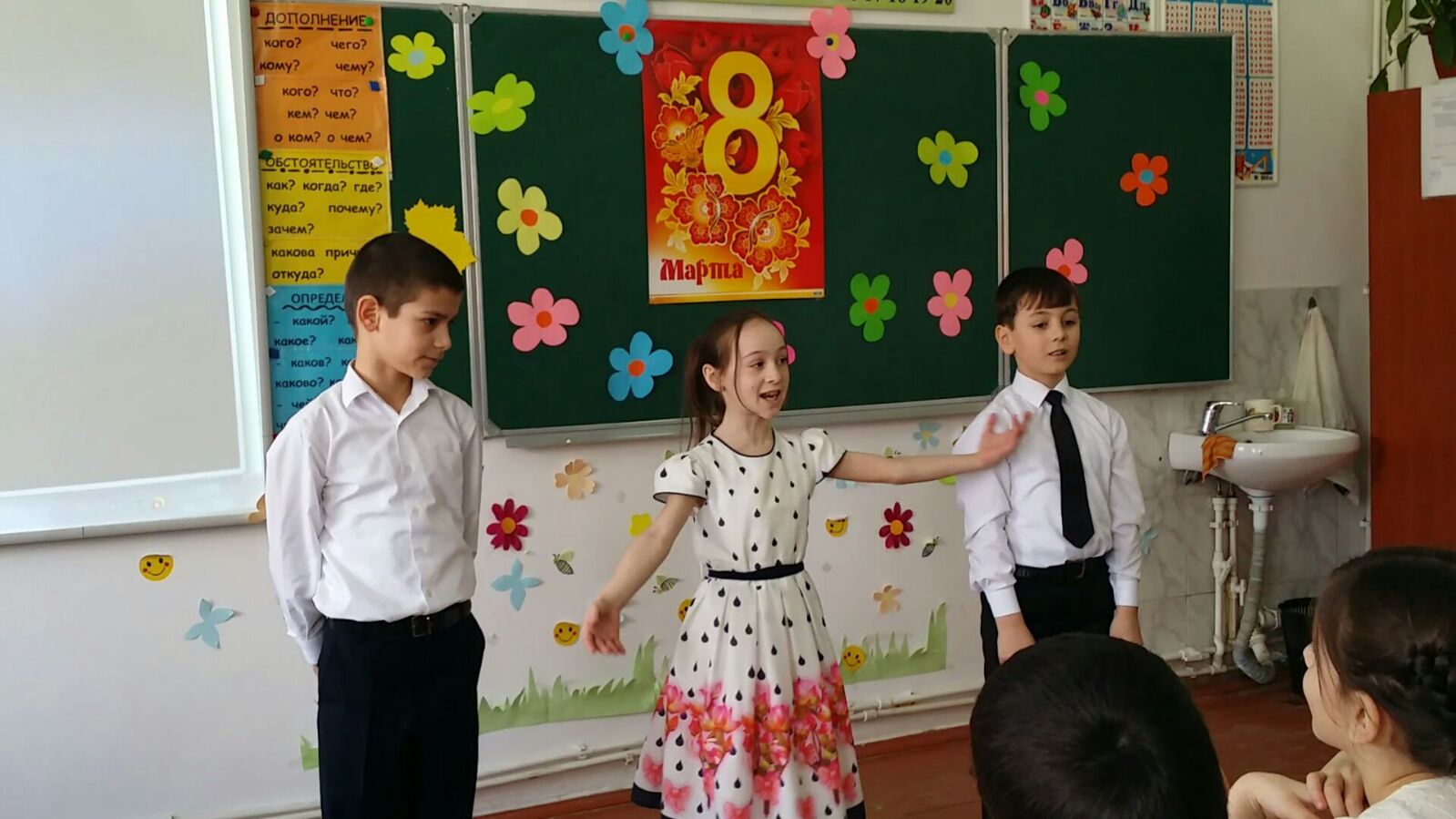 6 марта классными руководителями 3а класса Бальчуговой Т.Л., 4в класса Бадиной Л.Л. проведены утренники с приглашением мам «Что за день, 8марта». 5 марта проведен конкурс чтецов, посвященный 8-марту в конкурсе приняли участие обучающиеся 1по 4классы.