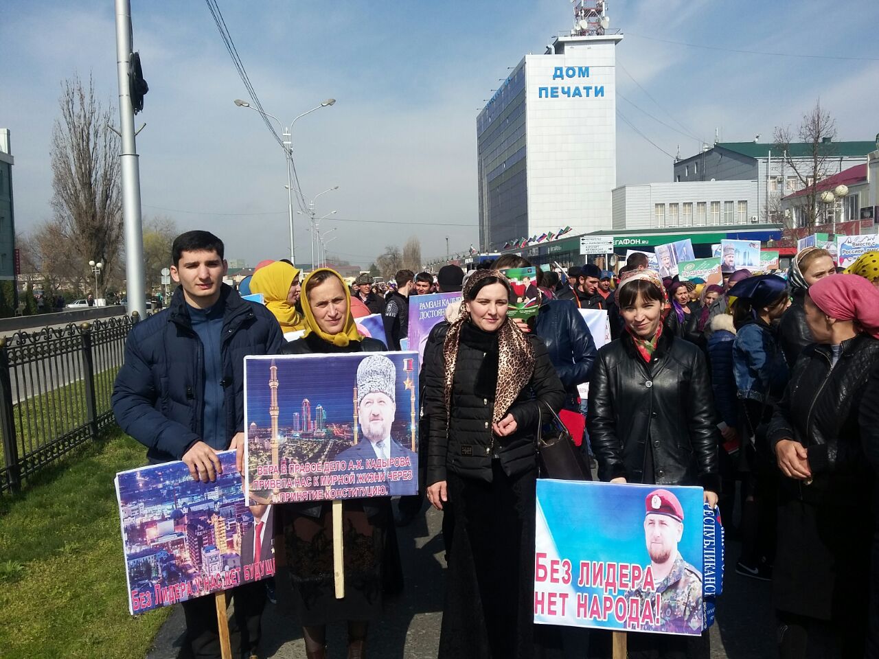Обучающиеся 9-11 классов и работники школы вышли на митинг с лозунгами в г.Грозный в честь празднования дня Конституции ЧР.
