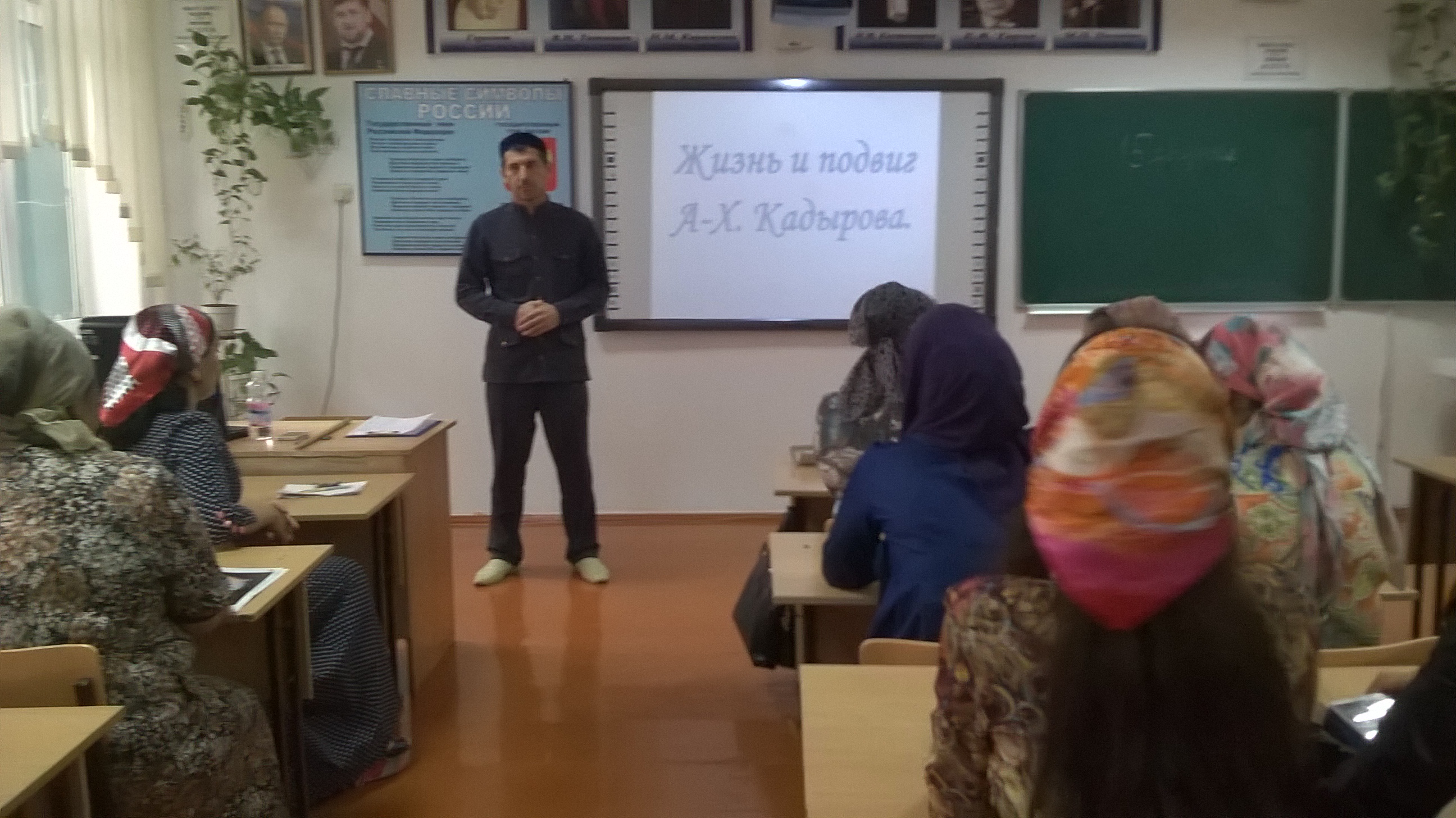 3) 18 августа в связи с Днем рождения Первого Президента ЧР Ахмат-Хаджи Кадырова было проведено общешкольное мероприятие на тему: «Ахмат Хаджи Кадыров!». Мероприятие началось с выступления педагога по ДНВ Джамалдиевым М.Б.