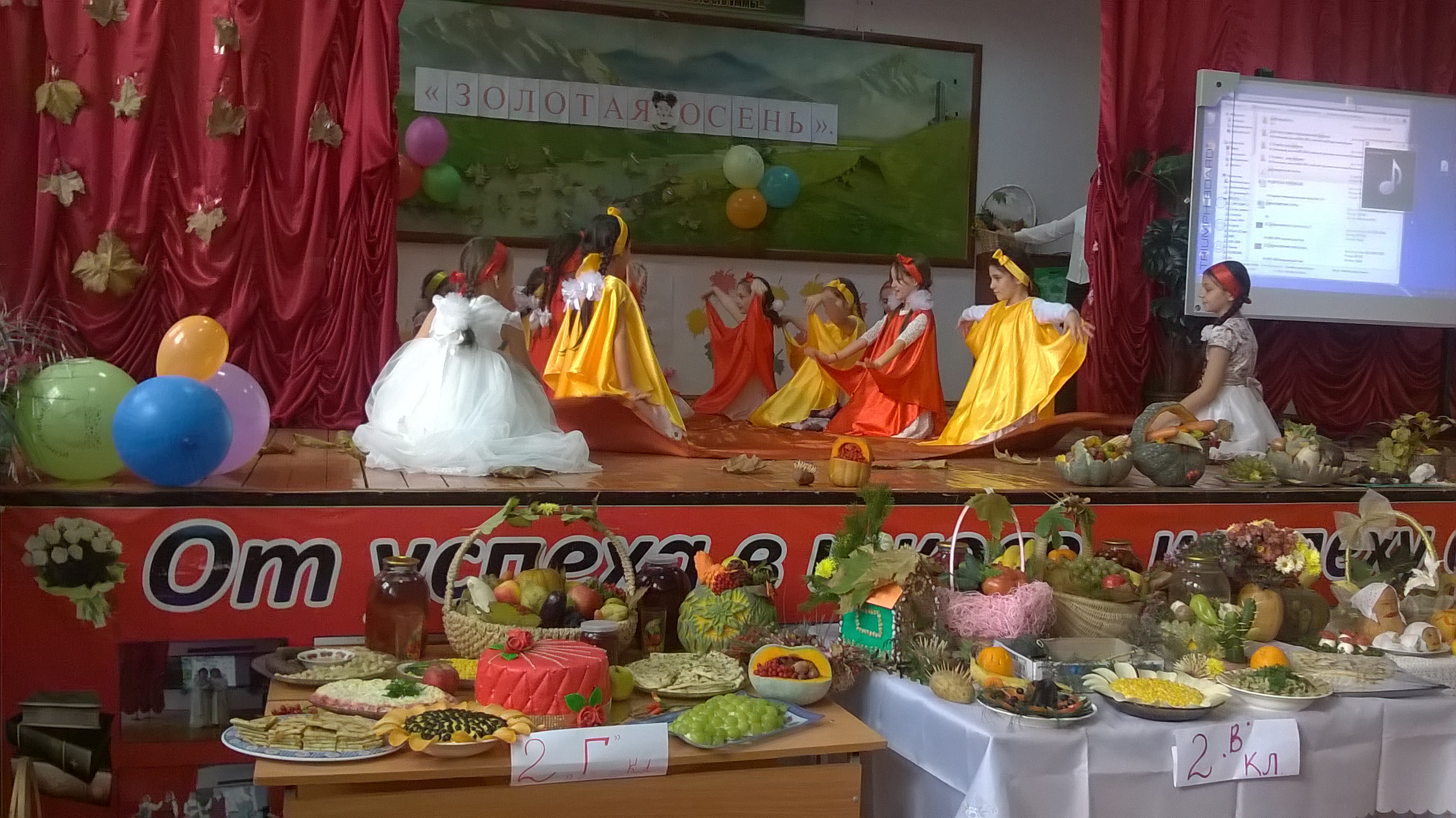 Заранее классные руководители и старосты классов получили задания для подготовки Золотой Осени: А ну-ка девушки «Мисс Золотая Осень- 2016г.», КВН «Королева Осени», Конкурс «Золотая Осень». Нужно было классам подготовить: осенний букет, поделки из природных материалов, оригинальные овощи, резьбу по фруктам «Карвинг», выпечку «Дары осени», рисунок «Золотая Осень», стенгазету «Золотая Осень». Классы готовили: визитку, песню, танец, оригинальный костюм «Наряд для осени», выпечку, и стенгазету о Королеве осени.