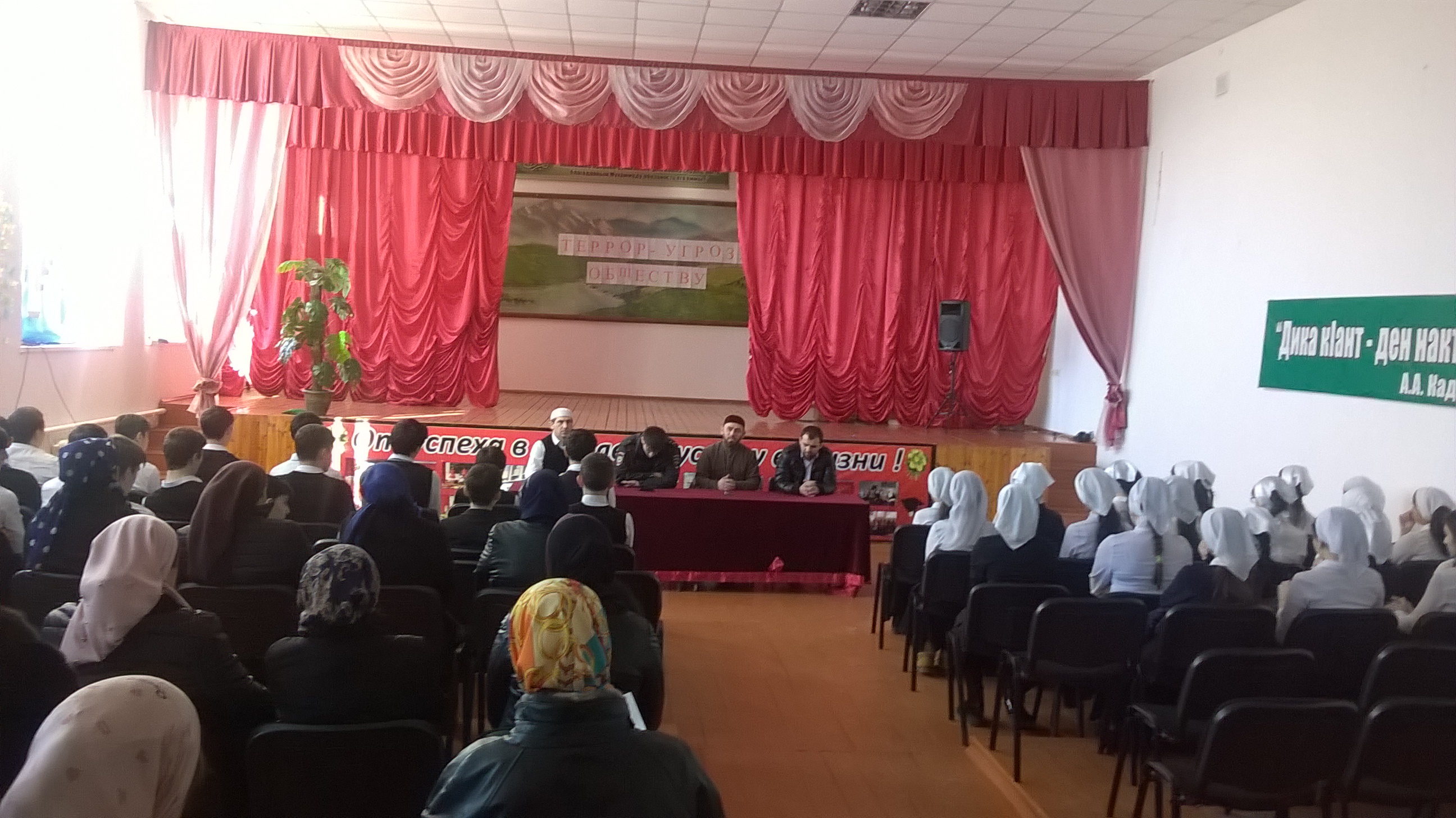 Начальник отдела социальной политики Усмаев А.И. он сказал «В последнее время часто слышим слова «терроризм» и «экстремизм», хотя они существуют с давних времен. Во всем мире целенаправленно хотят натравить мусульман друг на друга ,создавая при этом фашистские организации типа ИГИЛ в Сирии и других странах Востока. Расходуются для этих целей большие деньги. Неработающая молодежь на это и клюет. Попадая в руки вербовщиков, они ставят крест на свою жизнь, потому что обратной дороги нет. Таким образом они причиняют своим родителям горе, боль, разочарование.» Ведется пропагандистская работа среди молодежи. В леса уходят и обеспеченные, и нуждающиеся, т.е. те, кого можно легко вербовать. Районная администрация уделяет этим событиям большое внимание. Проводится такая разъяснительная работа в коллективах, а также с отдельными семьями. Он призвал людей объединиться, родителей обращать внимание на своих детей, не оставлять их на улице. Никто не застрахован. Детей надо воспитывать на добрых традициях наших предков.