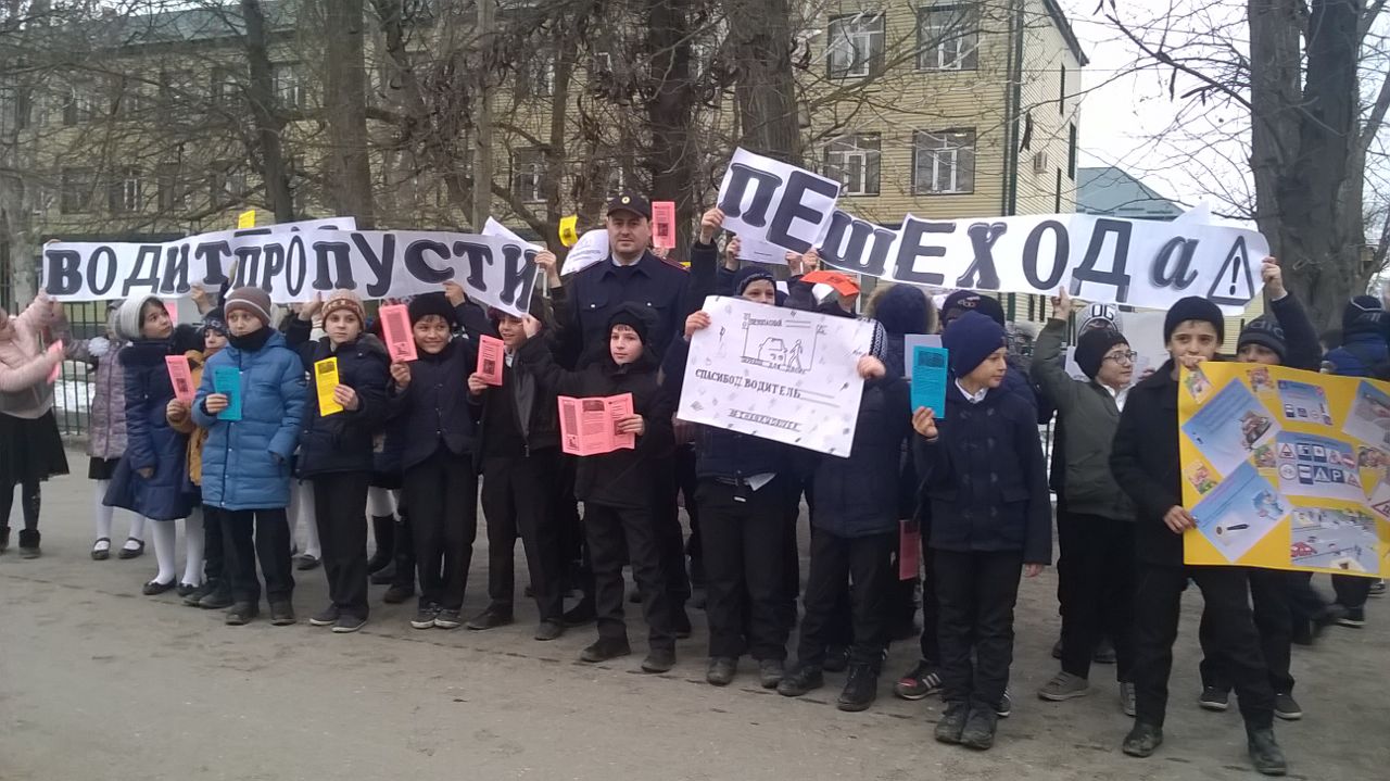 14.02.2017МБОУ «Шелковская СОШ №1» совместно с лейтенантом полиции инспектором по пропаганде БДД ОГИБДД Аспалиевым И.Х., проведена акция: « Пропусти пешехода».