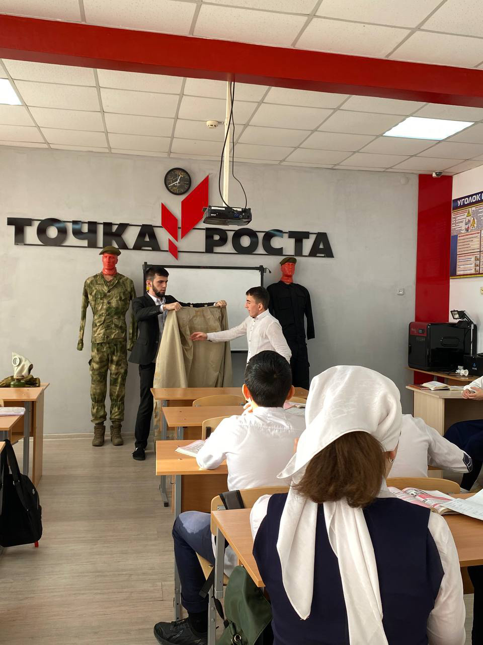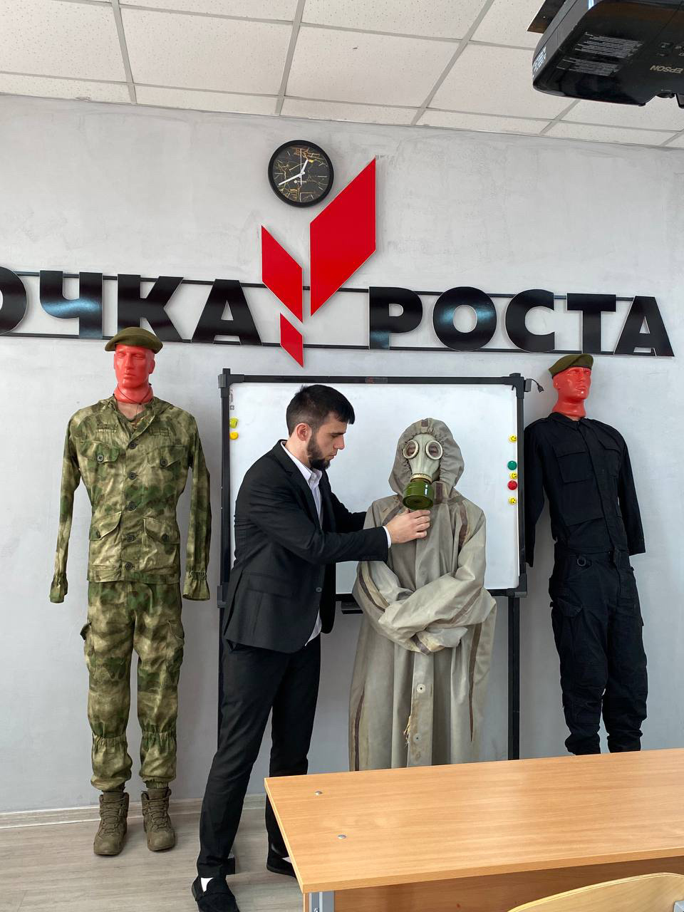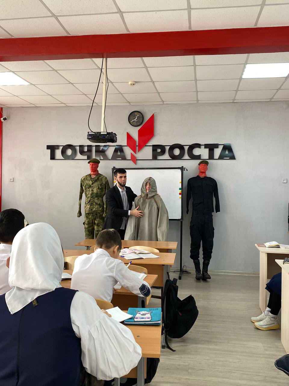 Так, в 8 «в» классе прошел урок ОБЖ на тему «Обеспечение радиационной безопасности населения». Учитель ОБЖ Сатиханов Идрис Вахамбиевич ознакомил обучающихся с основными видами обеспечения радиационной безопасности в условиях возникновения чрезвычайных ситуаций. После теоретической части ребята смогли проверить свои знания на практике с помощью инвентаря «Точки роста». Ребята узнали как правильно надевать защитную маску, противогаз и противорадиационный костюм. «В случаях возникновения чрезвычайных ситуаций очень важно уметь обеспечивать личную безопасность и правильно использовать средства защиты», - отметил учитель. Используя оборудование центра, обучающиеся смогли закрепить знания на практике. Желающих примерить маску и защитный костюм оказалось немало.
