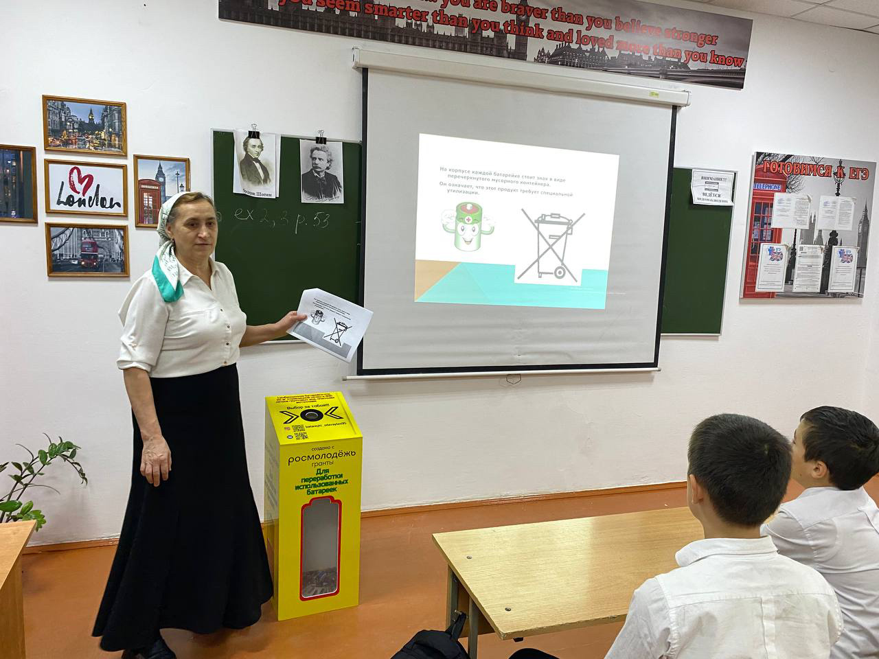 В МБОУ «Шелковская СОШ №1» установили контейнер для сбора использованных батареек.