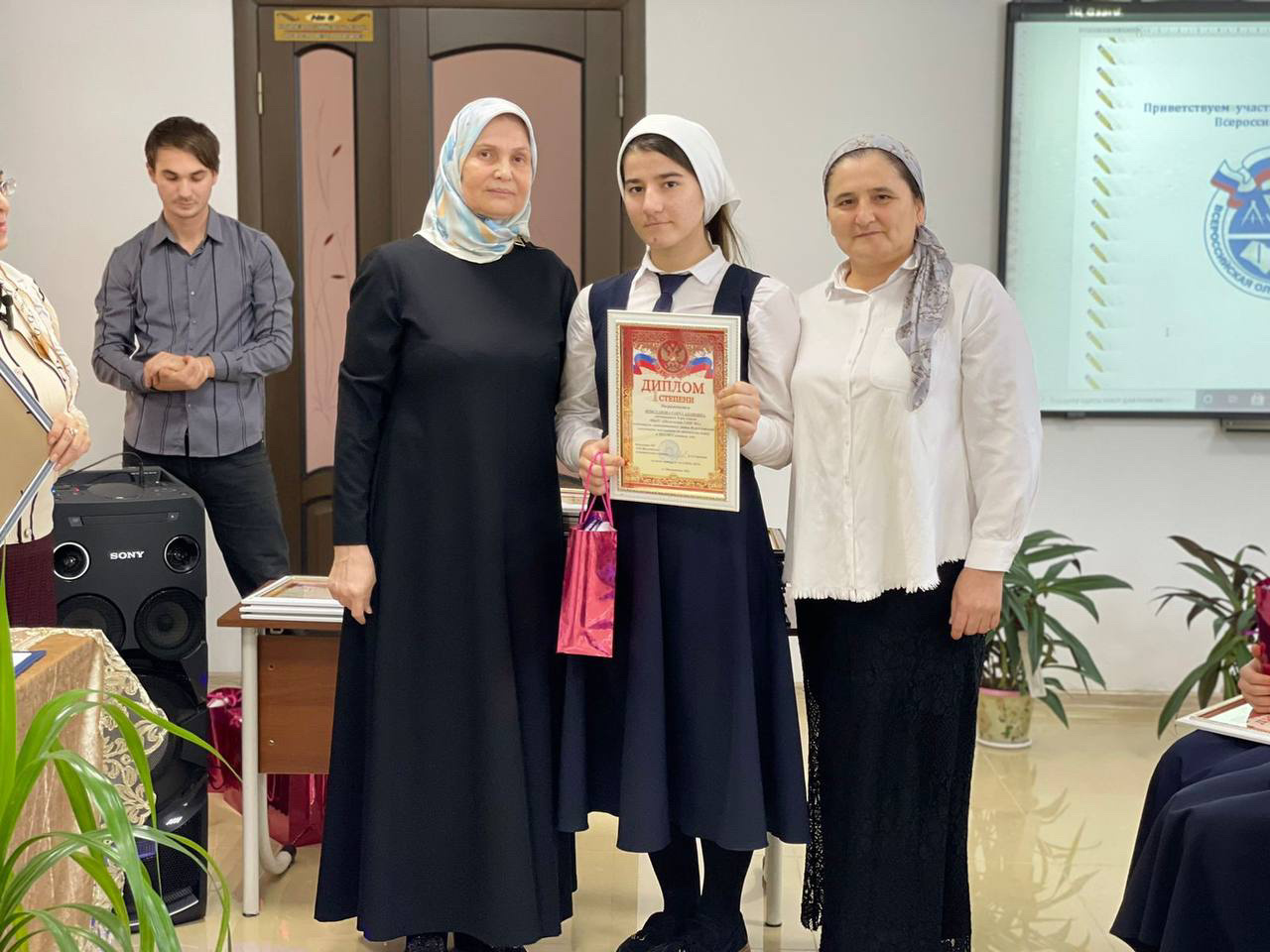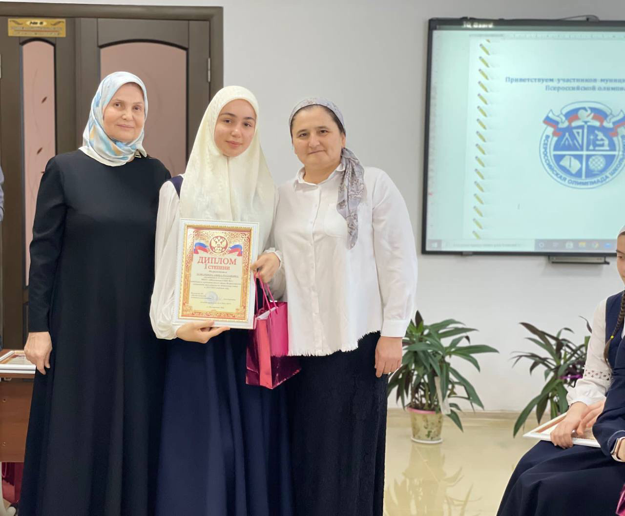 Хижан Абдулсаидовна наградила дипломами обучающихся, которые показали высокий уровень индивидуальных достижений, а также вручила дипломы победителям олимпиады.