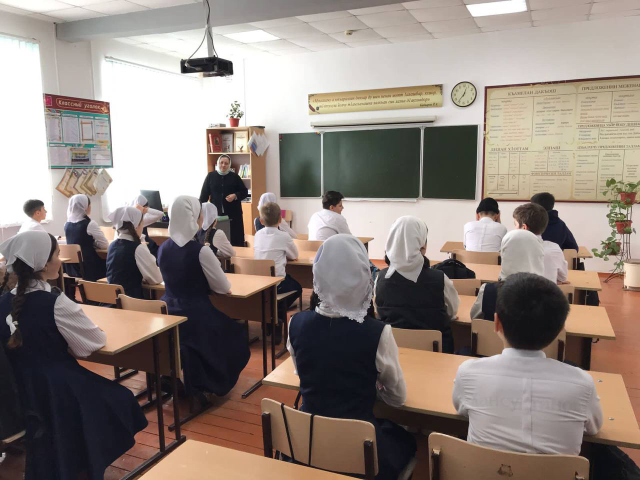 На классный час была приглашена мама военнослужащего Мидиева Зубаира, Мадиева Малика Баудиновна. Она рассказала обучающимся о детских и школьных годах своего сына, который в настоящее время служит на Украине.
