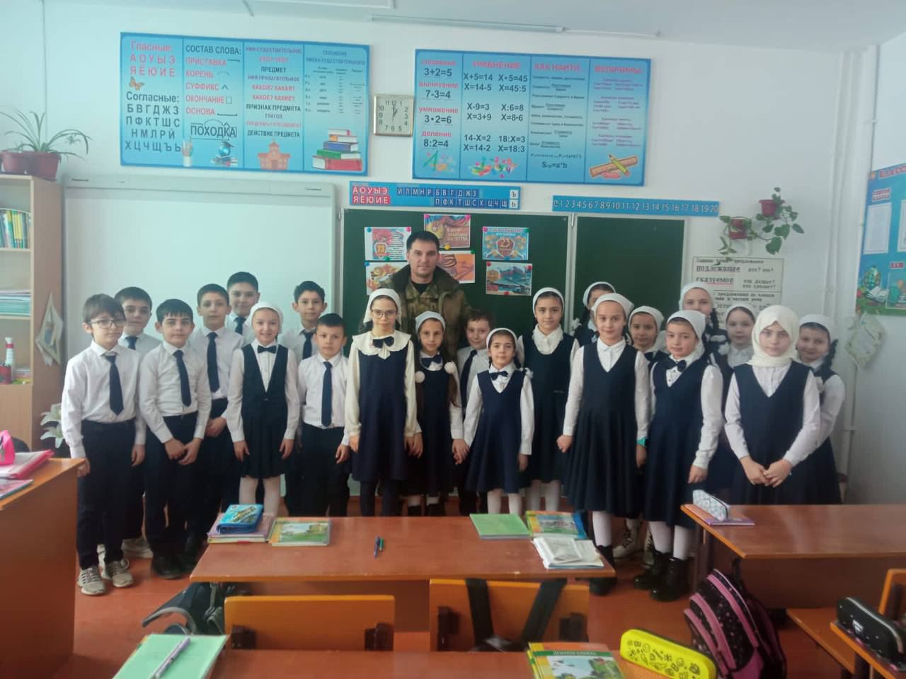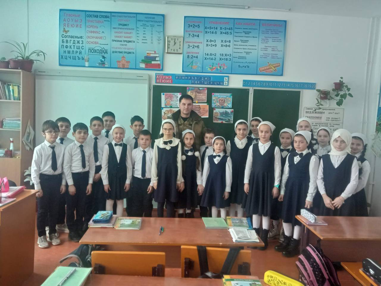 Также он отметил, что все навыки, приобретенные в школе, ему там помогли. Это такие навыки, как сообразительность, сплоченность, дисциплинированность и знания, полученные на уроках ОБЖ. Также он рассказал, что благодаря поддержке нашего Главы республики и народа военные, находящиеся на Украине, полны решимости и сил для защиты Родины.