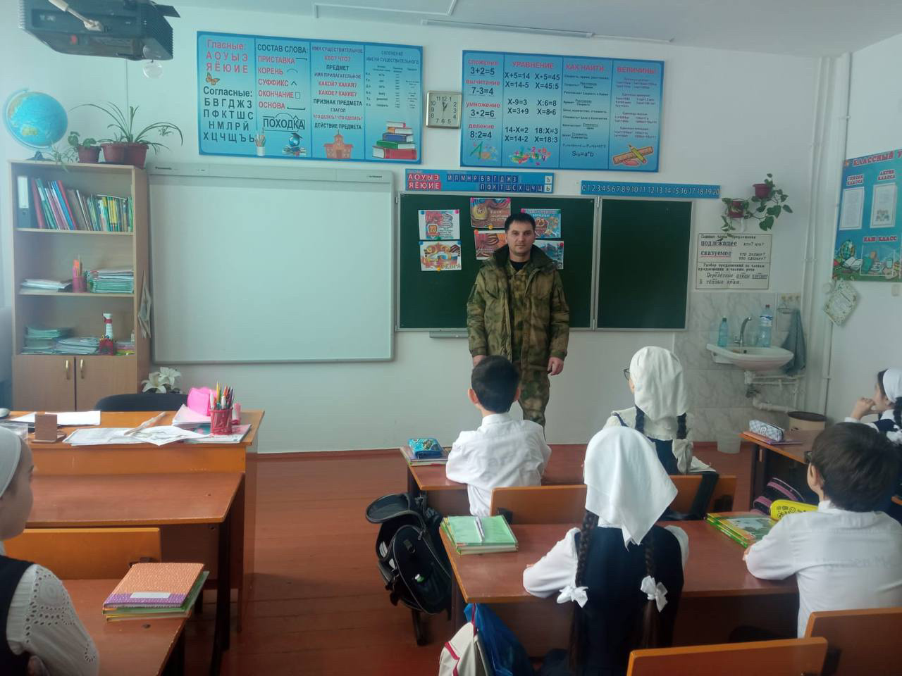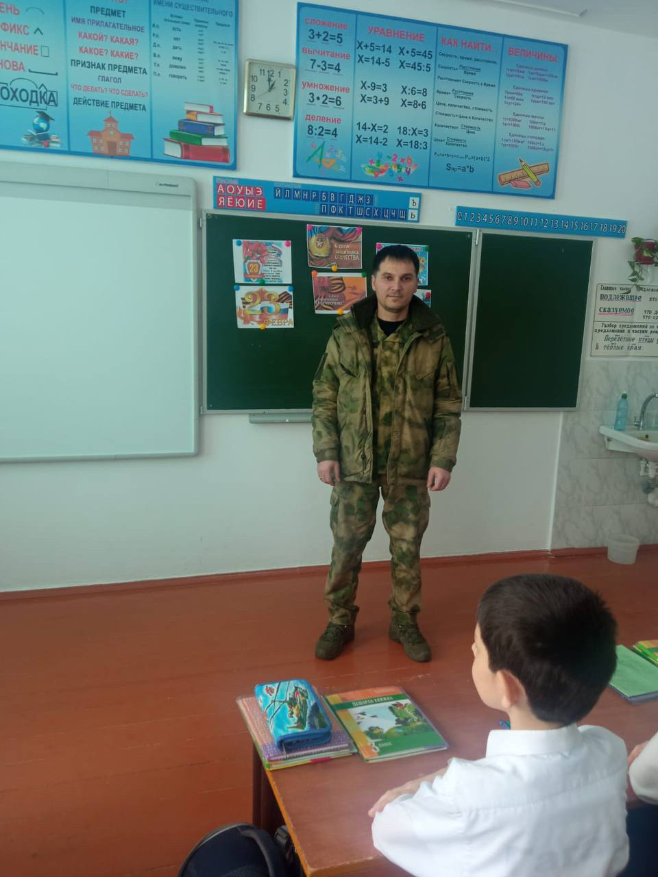 На классный час был приглашен военнослужащий Анасов Ислам Хусейнович. Он рассказал обучающимся о детских и школьных годах детей при военной спецоперации на Украине.