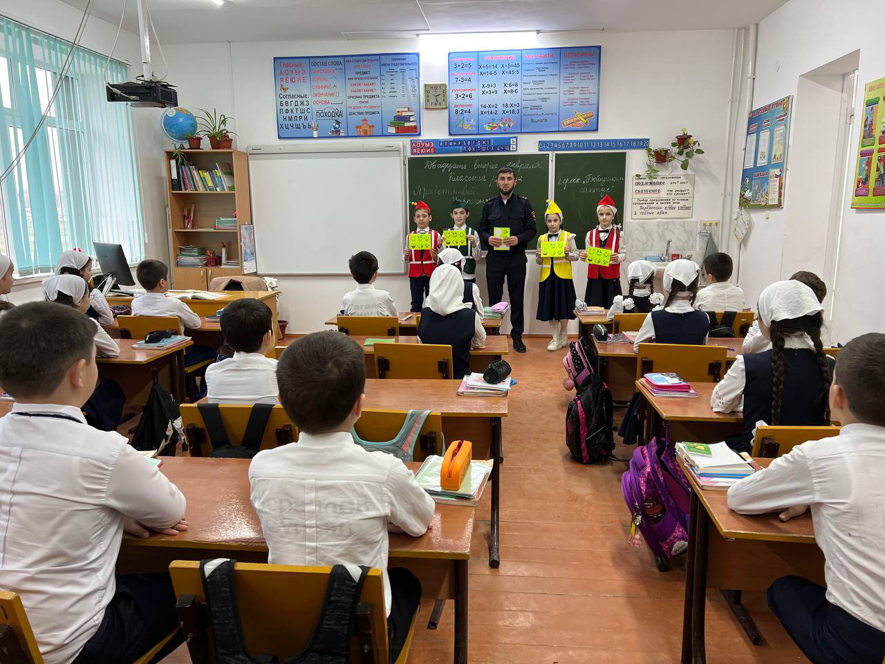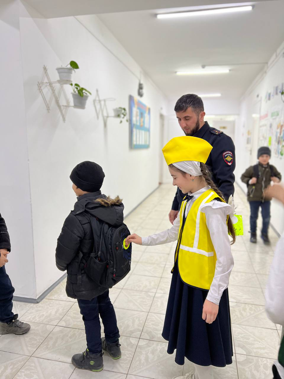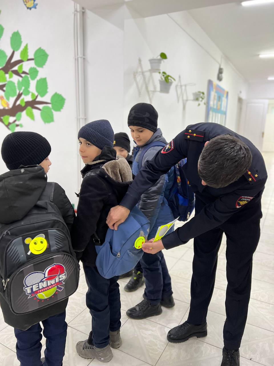 В МБОУ «Шелковская СОШ №1» в гостях побывал инспектор по пропаганде безопасности дорожного движения ОГИБДД ОМВД России по Шелковскому району, старший лейтенант полиции Солтаев Шамхан Шахрудиевич. Он провел акцию по раздаче светоотражающих элементов.