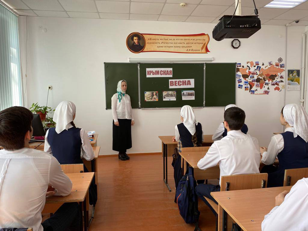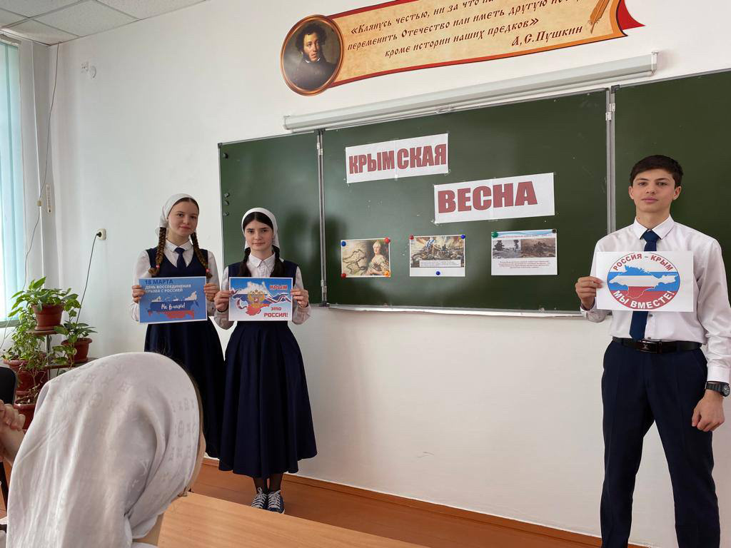 18 марта в МБОУ «Шелковская СОШ 1» прошли классные часы, приуроченные Крымской весне.