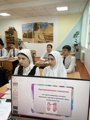 В рамках плана проведения 1 этапа Всероссийской межведомственной комплексной оперативно-профилактической операции «Дети России-2023» учителем истории Манцаевой Ж.В в 9 «Г» классе проведен классный час на тему «Законопослушное поведение«.