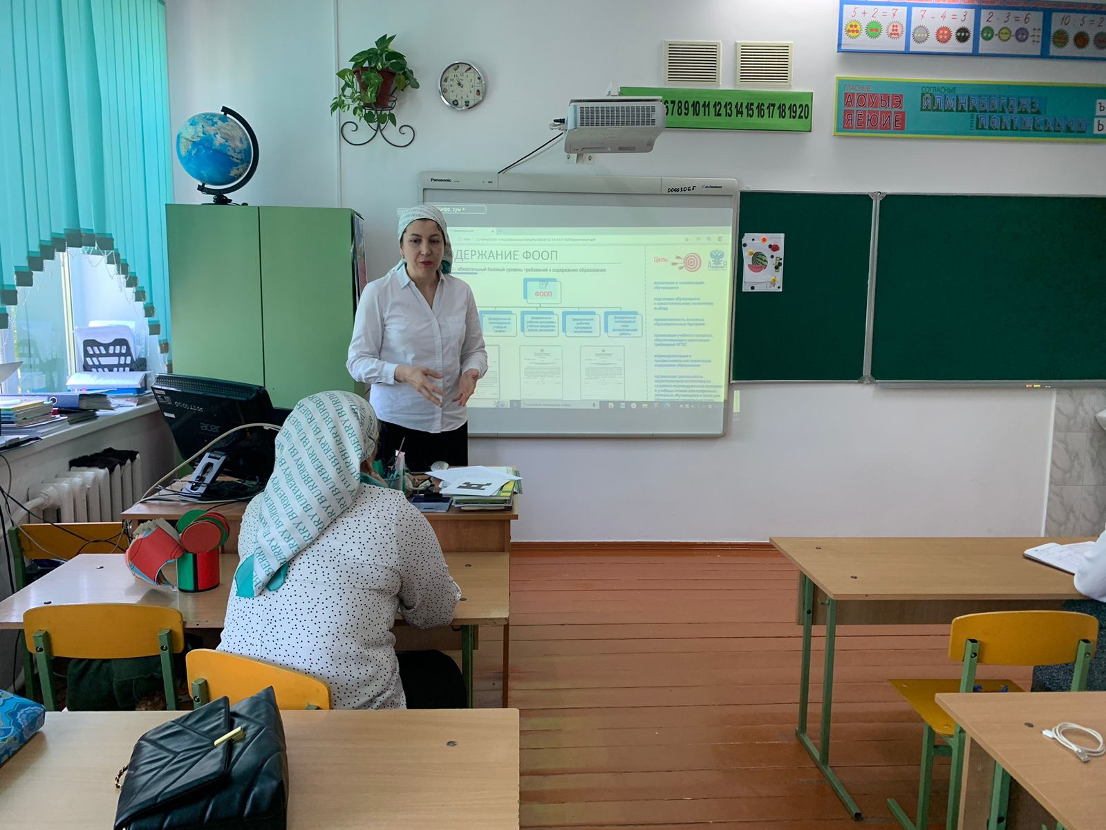 В целях подготовки к введению ФООП согласно плану методической работы методистом школы Омариевой Лаурой Кадиевной был проведён образовательный семинар по теме "Особенности введения федеральных образовательных программ". На семинаре присутствовали учителя школы, которые познакомились с нормативно- правовой документацией, условиями и сроками реализации ФООПов. Целью вводимых изменений является организация единого образовательного пространства по всей территории страны для обеспечения общедоступности и высокого качества образования.