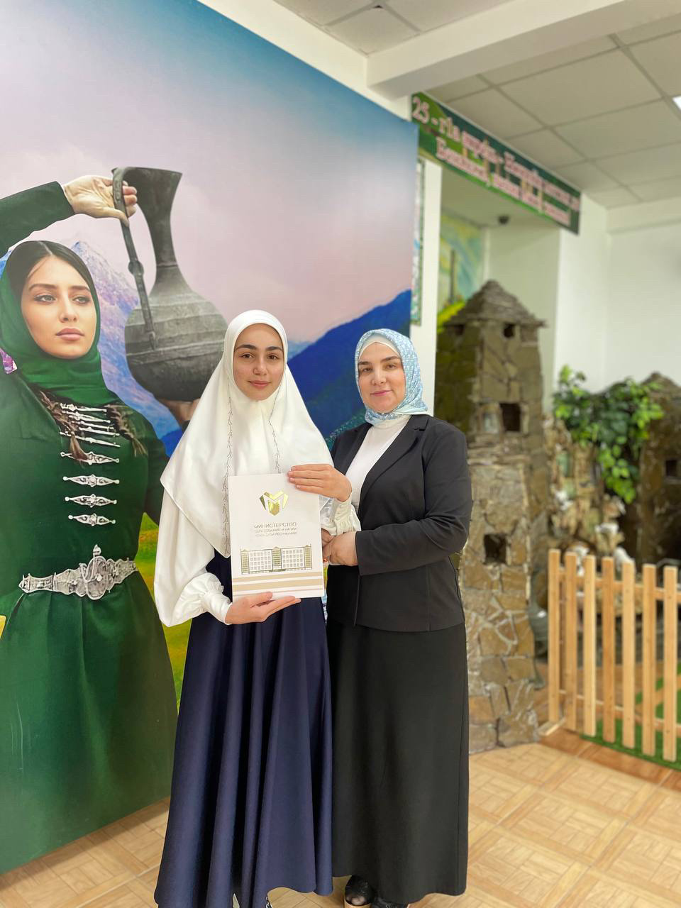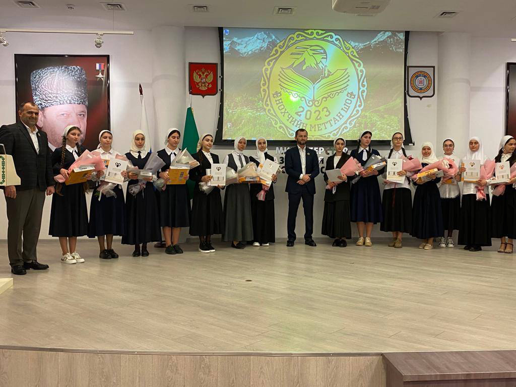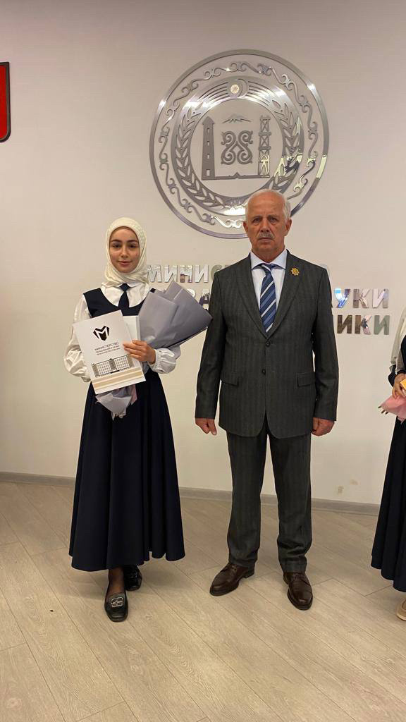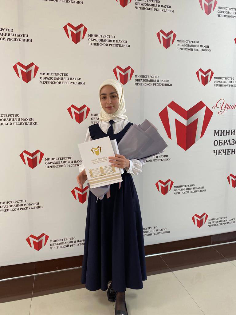 В зале министерства образования и науки ЧР Амина была награждена ведомственной грамотой и ценными призами от регионального общественного фонда имени Первого Президента Чеченской Республики, Героя России Ахмата-Хаджи Кадырова (Дала г1азот къобалдойла цуьнан!).