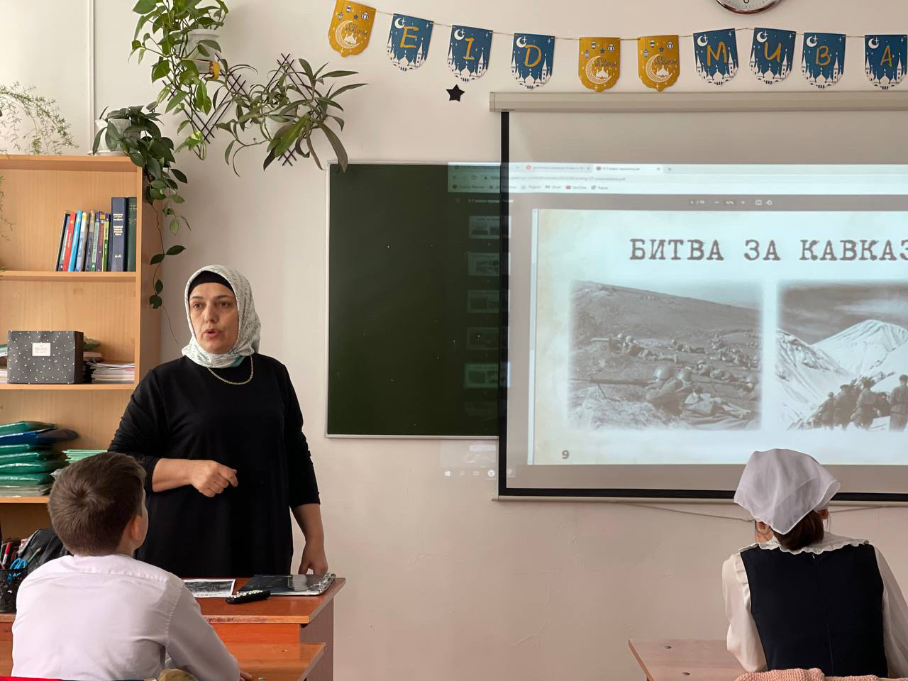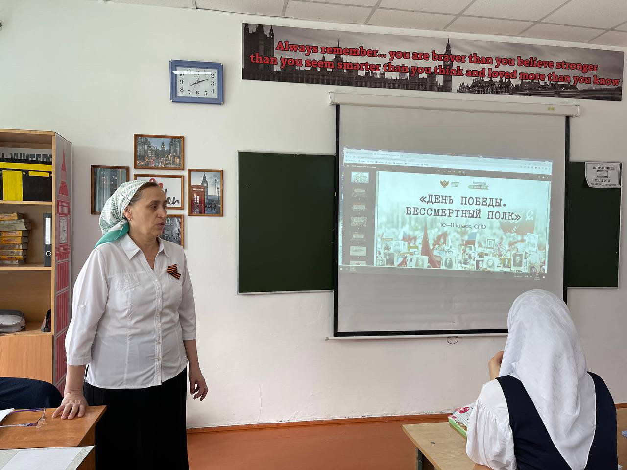 В преддверии празднования Дня Победы 9 мая в МБОУ «Шелковская СОШ №1» прошли внеурочные занятия из цикла «Разговоры о важном», посвященные событиям Великой Отечественной войны 1941-1945гг.