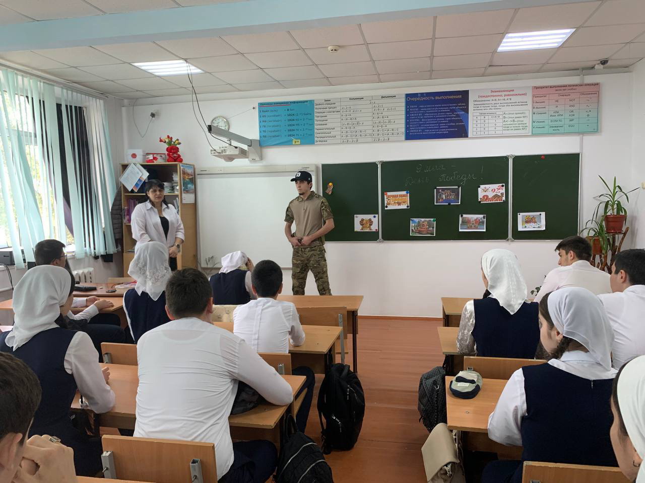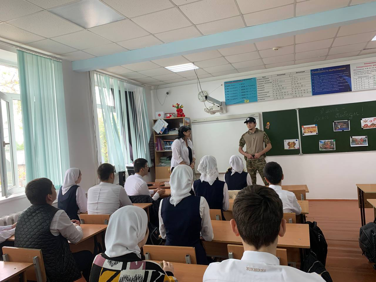 На встречу был приглашен Джабрагимов Магомед Зубайраевич, который недавно вернулся с зоны СВО. Магомед рассказал обучающимся о своей работе, с какими трудностями они сталкиваются и какая это важная и ответственная профессия-профессия военного.