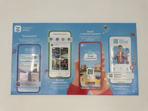 Стенд включает в себя установленные разделы для наполнения информацией об актуальных событиях, которые проводятся Российским обществом «Знание» и просветительском медиаконтенте.