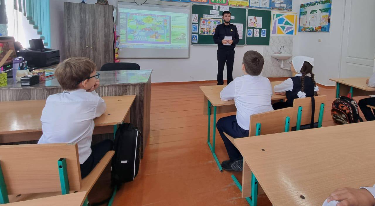 18.09.2024В рамках недели ПДД в МБОУ «Шелковская СОШ №1» прошел классный час совместно с инспектором по пропаганде безопасности дорожного движения ОГИБДД ОМВД России по Шелковскому району, старшим лейтенантом полиции Солтаевым Шамханом Шахрудиевичем на тему:«Основы правильного поведения на улице и дороге». С целью углубления знаний учащихся о правилах дорожного движения, развития внимания, сообразительности; воспитания навыков выполнения основных правил поведения учащихся на улице, дороге.