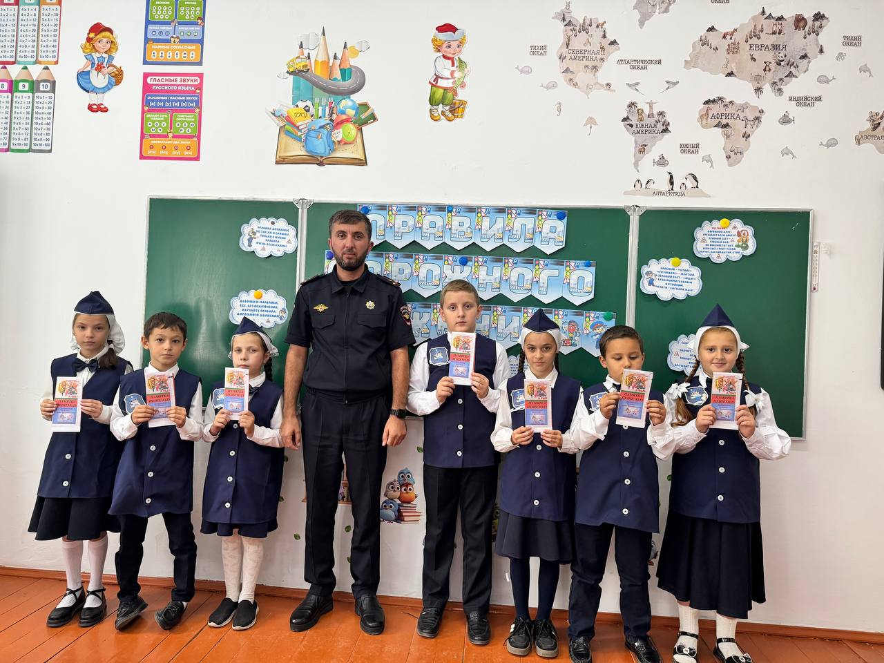 21.09.2024В МБОУ «Шелковская СОШ №1» в 3«Б» классе совместно с инспектором ОГИБДД ОМВД России по Шелковскому району старшим лейтенантом полиции Солтаевым Шамханом Шахрудиевичем прошла беседа на тему: «Правила Дорожного Движения» Детям было интересно узнавать правила безопасности на дороге, так же были разданы буклеты