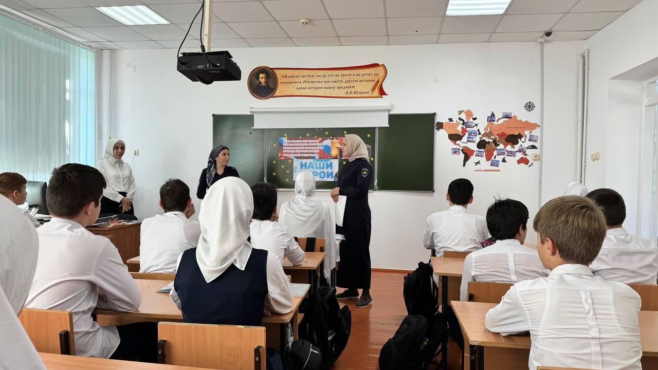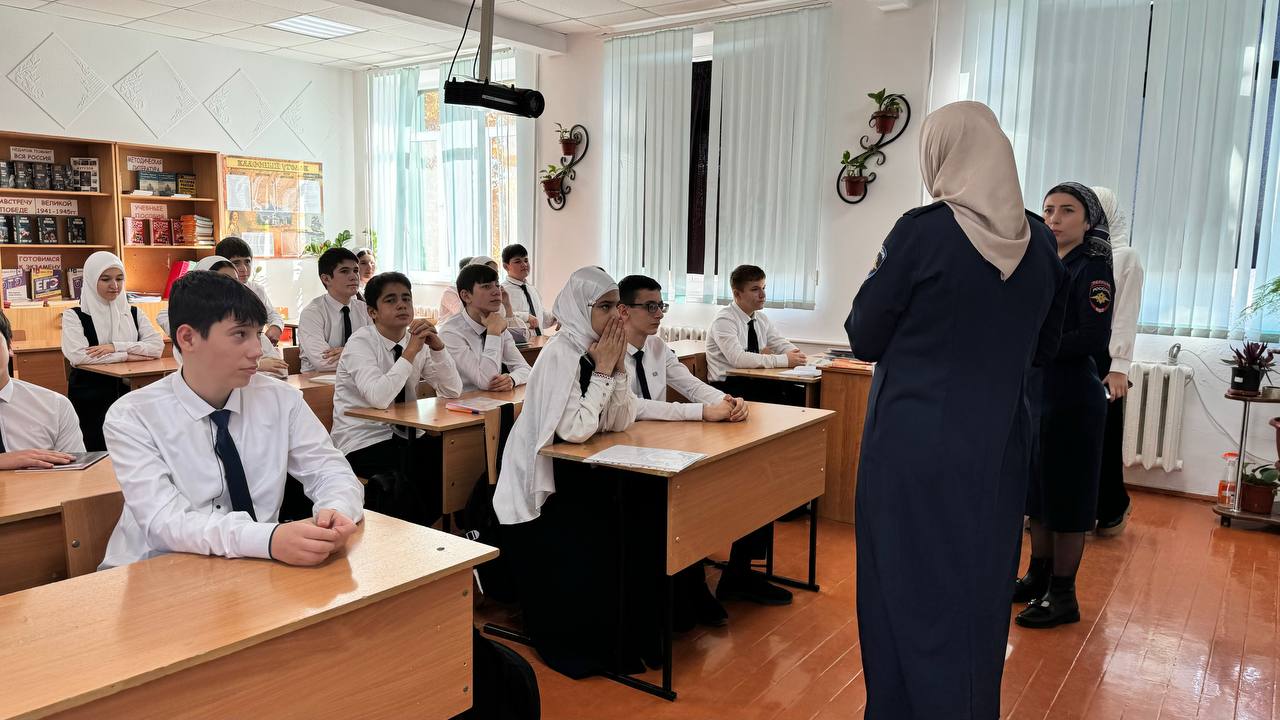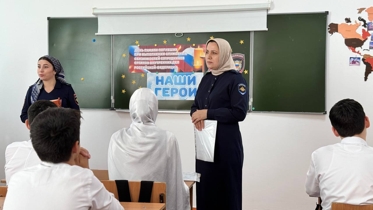08.11.2024В МБОУ «Шелковская СОШ №1» следователь СО ОМВД России по Шелковскому району майор юстиции Сулиева Хеди Нурадиевна и старший инспектор ПДН ОУУП и ПДН ОМВД России по Шелковскому району капитан полиции Мациева Шовда Байсултановна провели мероприятие просвещеное Ко Дню памяти погибших при исполнении служебных обязанностей сотрудников органов внутренних дел России.День памяти погибшим при исполнению служебного долга — это момент, когда мы собираемся, чтобы почтить память тех, кто отдал свою жизнь в служении Родине. В этот день важно не только вспомнить о подвигах и жертвах, но и осознать, что служба — это призвание, требующее мужества, преданности и самопожертвования.Беседа в такой день наполняется особым смыслом. Каждое слово, произнесенное в их честь, становится символом надежды и стойкости. Важно помнить, что их смелость и решимость продолжают вдохновлять нас. Мы говорим о значимости мира, о том, как хрупка эта нить, соединяющая нас с прошлым.