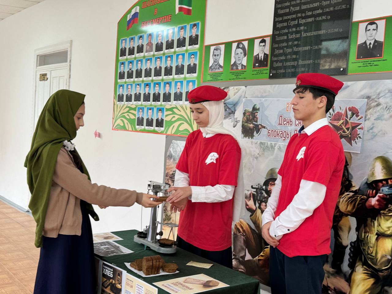 28.01.2025На протяжении многих лет в России проводится акция "Блокадный хлеб", которая посвящена истории обороны и блокады Ленинграда в ходе Великой Отечественной войны. В январе 2025 года наша страна отмечает 81-летие со дня полного освобождения Ленинграда от блокады. 872 дня был Лениград в блокадном кольце. И это не просто цифра — каждый день стал тяжелым испытанием в жизни ленинградцев.Единственной надеждой на завтрашний день был паек. Буханка хлеба постепенно превратилась в 125-ти граммовый кусочек — именно такой была минимальная норма выдачи хлеба для жителей блокадного Ленинграда. В МБОУ «Шелковская СОШ №1»активисты ЕДЮО «Юные Кадыровцы» и волонтерского движения провели акцию «Блокадный хлеб», в ходе которой педагогам и обучающимся раздавали информационные листовки о блокаде Ленинграда во время Великой Отечественной войны и кусочки хлеба весом 125 грамм.#Блокадныйхлеб