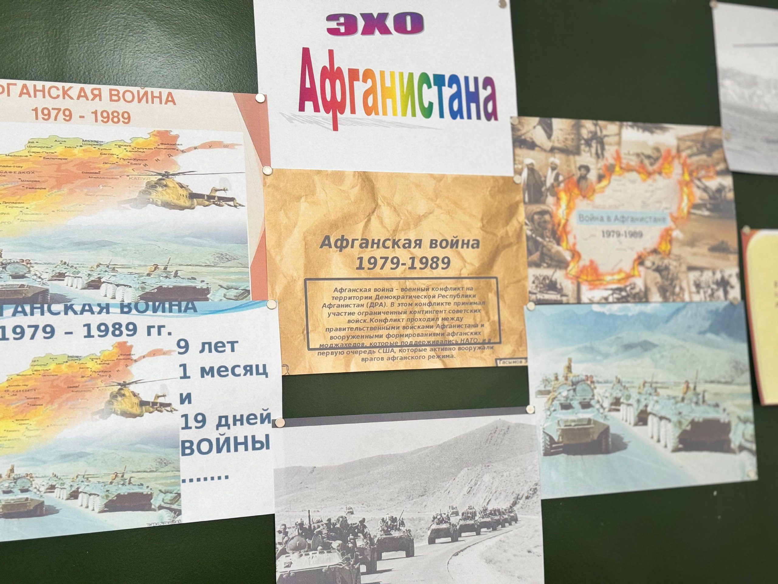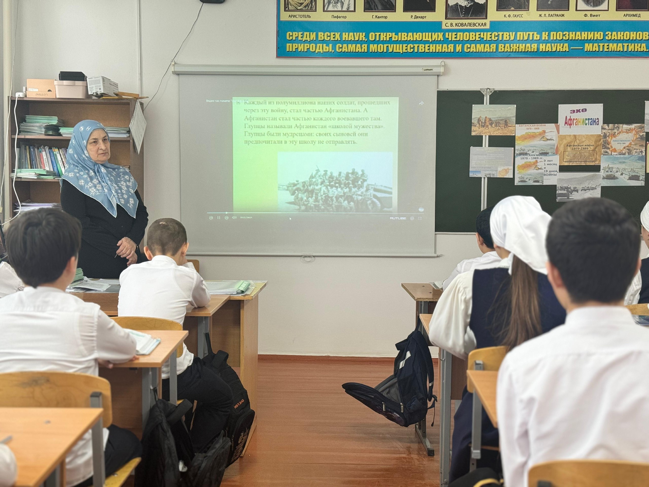 20.02.2025Классный руководитель 6 «А» класса Баймуратова Мийзан Ахьядовна провела классный час на тему: «Эхо Афганистана».Цель: Осмысление трагических событий Афганской войны, формирование чувства уважения к ветеранам и памяти о погибших.Заключение: Афганская война – урок истории, который нельзя забывать. Важно помнить о жертвах, ценить мир и поддерживать ветеранов. Помнить, чтобы не допустить повторения подобных трагедий.