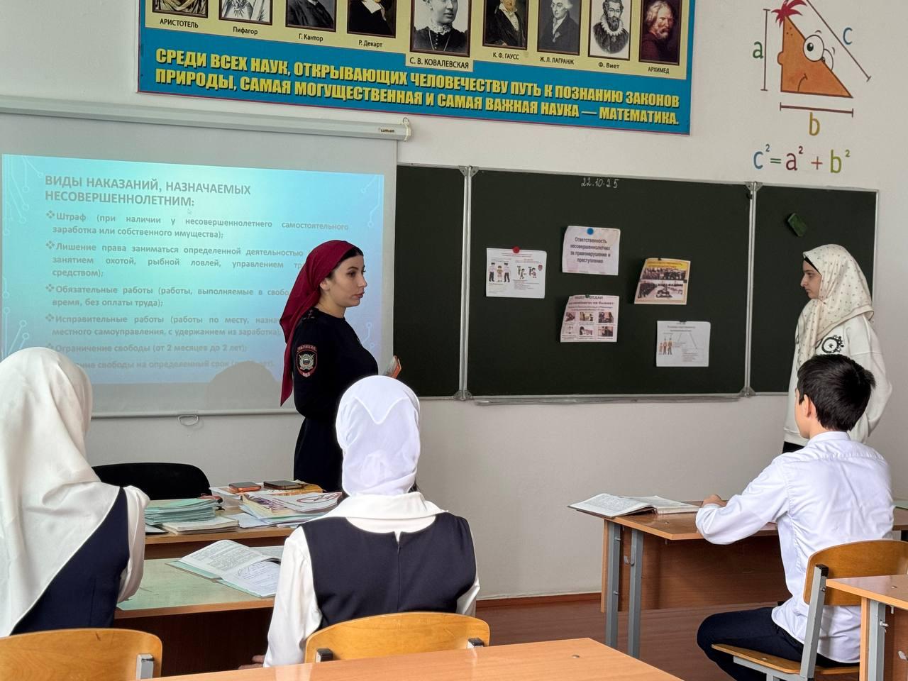 03.11.2025🤝Социальным педагогом Нухаевой Аминой Адамовной совместно с инспектором ПДН Мациевой Шовдой Байсултановной была проведена беседа с учащимися 10-11 классов на тему «Об ответственности несовершеннолетних за имущественные преступления». 📕🌟В ходе встречи инспектор подробно обсудила основные положения закона, касающиеся имущественных преступлений, а также последствия, которые могут наступить за нарушение данных норм. Она объяснила, как неправомерные действия могут повлиять на жизнь и будущее подростков, подчеркнув важность ответственности и правосознания.📈Учащиеся задавали вопросы, делились своими мыслями и переживаниями по данной теме.Также были рассмотрены примеры реальных случаев, когда недобросовестные действия молодых людей приводили к негативным последствиям, как для них самих, так и для их близких. Инспектор призвала учащихся соблюдать закон и проявлять бдительность.⚠