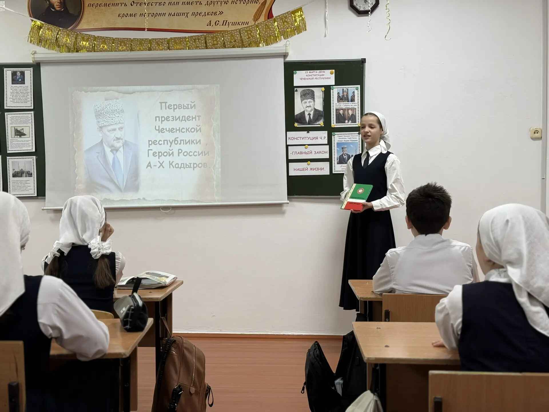 16.03.2026Сегодня в 5 «Г» классе прошёл классный час, посвящённый Дню Конституции Чеченской Республики. Его провела классный руководитель Айшат Алхузуровна. На занятии ребята узнали об истории принятия основного закона республики, о его значении для жителей Чечни и о том, какие права и обязанности закреплены в Конституции. Особое внимание уделили символике республики и важности соблюдения законов. Ученики активно участвовали в обсуждении, задавали вопросы и делились своими мыслями. Такие встречи помогают формировать у школьников гражданскую позицию и уважение к законам своей страны.✨ #ДеньКонституцииЧР #ЧеченскаяРеспублика #КлассныйЧас