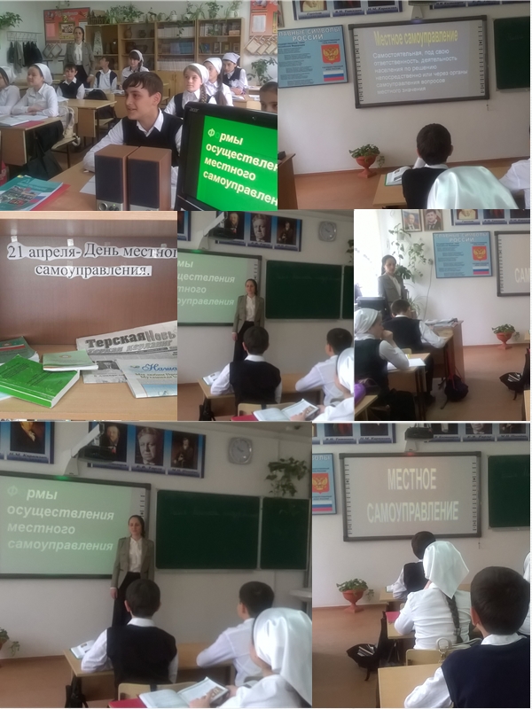 В 9- 11 классах состоялись тематические уроки на тему: «Что такое местное самоуправление?», на первом этапе урока учащиеся совместно с учителями обществознания определяли такие понятия как: органы местного самоуправления и его функции, муниципальное образования , муниципальная собственность, устав муниципального образования. Коснулись вопроса земства и земской реформы при императоре АлександреI, на втором этапе состоялась деловая игра , в ходе которой участники делились на две группы .Одна группа представляла депутатский корпус, ей было поручено составление плана благоустройства Шелковского муниципального образования, другая казначеев , изыскивали средства для пополнения средства для пополнения местного бюджета. В ходе работы ребята обращались к источникам законодательства местного самоуправления.