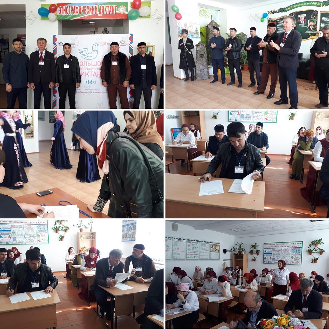 Это ежегодная акция, которая проводится одновременно в 85 регионах нашей страны. Более 300 тысяч человек в этом году решили проверить свои знания о России! И наши учителя и родители - не исключение! Наша площадка зарегистрировала более 50 человек, среди которых были и уважаемые гости: заместитель Главы Администрации Шелковского района Арсункаев Шамхан Вахаевич, Глава Шелковского сельского поселения Радуев Уматгери Товгериевич, заведующий методкабинетом УО Шелковского района Индарбиев Нурсолта Султанович и другие. В фойе школы гостей встречали с музыкой и национальными танцами!