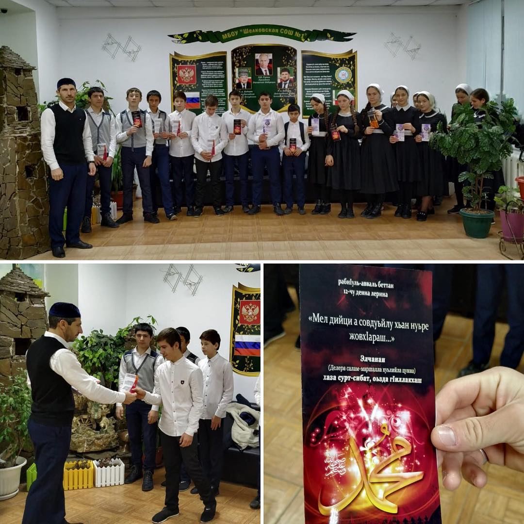 21.11.2018Педагог по духовно-нравственному воспитанию Джамалдиев Мовлади Бексултанович провёл акцию по раздаче буклетов о Пророке Мухаммаде (с.в.с.). Он рассказал учащимся о Великой Миссии Посланника Всевышнего, о том, как важно знать о Его жизни и деятельности.