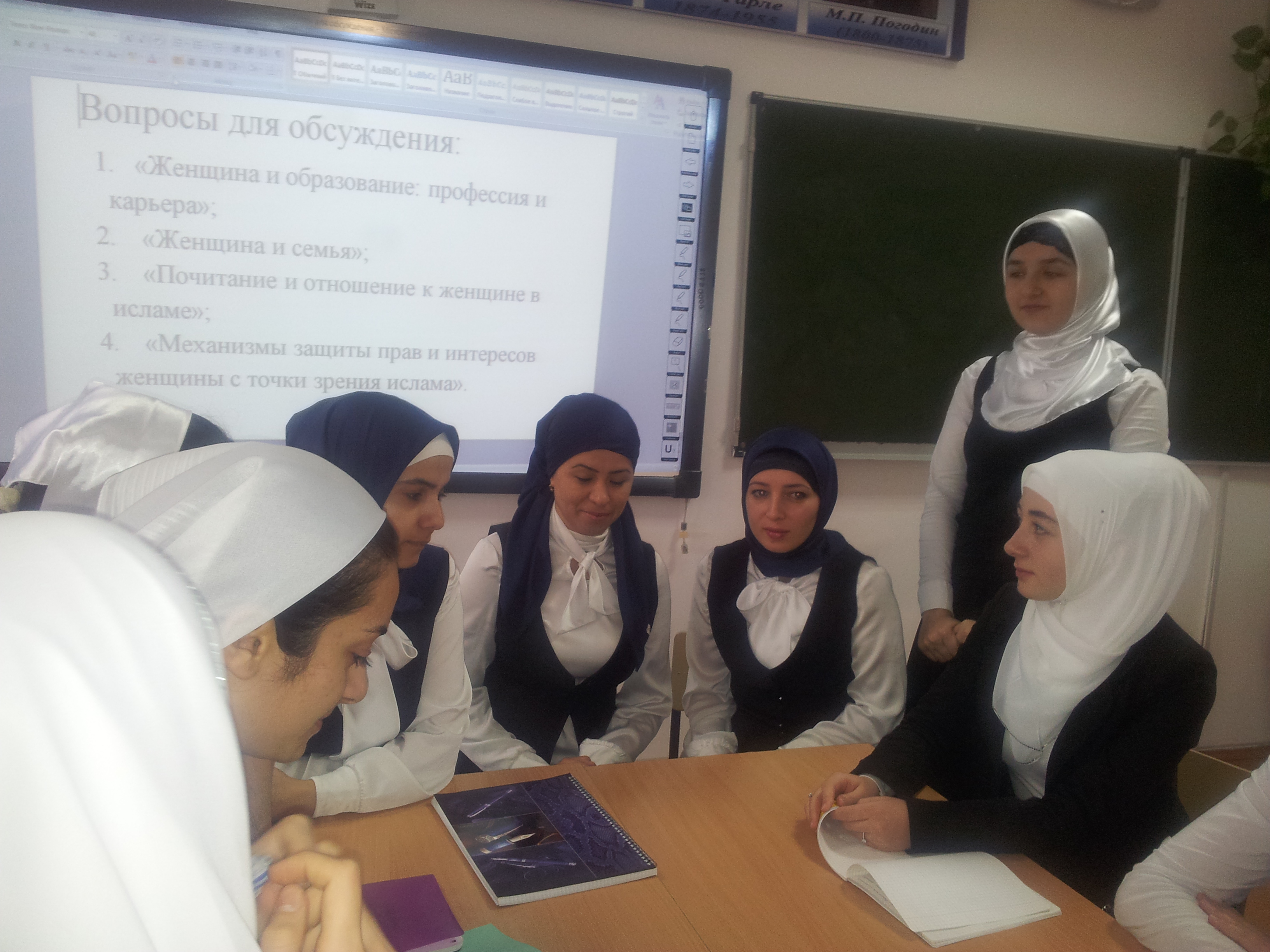 Пресс – релиз № 2 от 19.11.2014г. 19. 11.2014 года в школе проведен круглый стол на тему: «Роль женщины – матери в Исламе». 19 ноября в МБОУ «Шелковская СОШ №1» был проведен круглый стол. В нем приняли участие заместитель директора по воспитательной работе Мустафаева М.А., педагог ДНВ Джамалдиев М.Б., учителя – предметники, обучающиеся 9-11 классов. Цель: просвещение и информирование прав и интересов женщин в Исламе, в семейных и социально образовательных вопросах.В ходе встречи участники круглого стола обсудили такие вопросы как: «Женщина и образование: профессия и карьера», «Женщина и семья», «Почитание и отношение к женщине в исламе», а также «Механизмы защиты прав и интересов женщины с точки зрения ислама».- Женщина – это, прежде всего, мать. В то же время, она чья-то дочь, сестра, жена или сноха. Пророк Мухаммед (да благословит Его Аллах и приветствует) призывал всех стремиться к знаниям. Положение женщин в доисламской Аравии оставляло желать лучшего, а ислам улучшил положение женщин, дал им права. В Священном Коране, в частности, в суре «Муджодала», говорится о более высоком положении людей, стремящихся к образованию, будь оно светским или религиозным. Любая девушка имеет право на получение образования, - отметил педагог по ДНВ Джамалдиев М.Б.В ходе обсуждения собравшиеся отметили, что в современном обществе молодые девушки должны получать образование для того, чтобы знать, как воспитывать своих детей, сохранять традиции и обычаи народа.Завершая работу круглого стола, его участники отметили, что поднятая тема о правах женщины актуальна, поэтому необходимо эти вопросы обсуждать для пользы и блага общества.Автор: Мустафаева Марина Ашимовна тел: 8 (928) 888-50-97