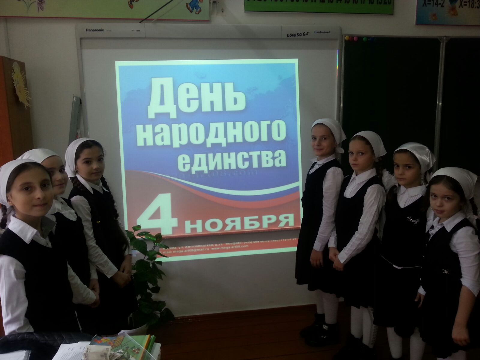 Во всех классах проведены классные часы на тему: «Добротой и миром дорожить умейте», « В единстве наша сила», «О героях народного ополчения», «Праздник, дающий народу единство», «Что мы отмечаем 4 ноября», «Шире круг».